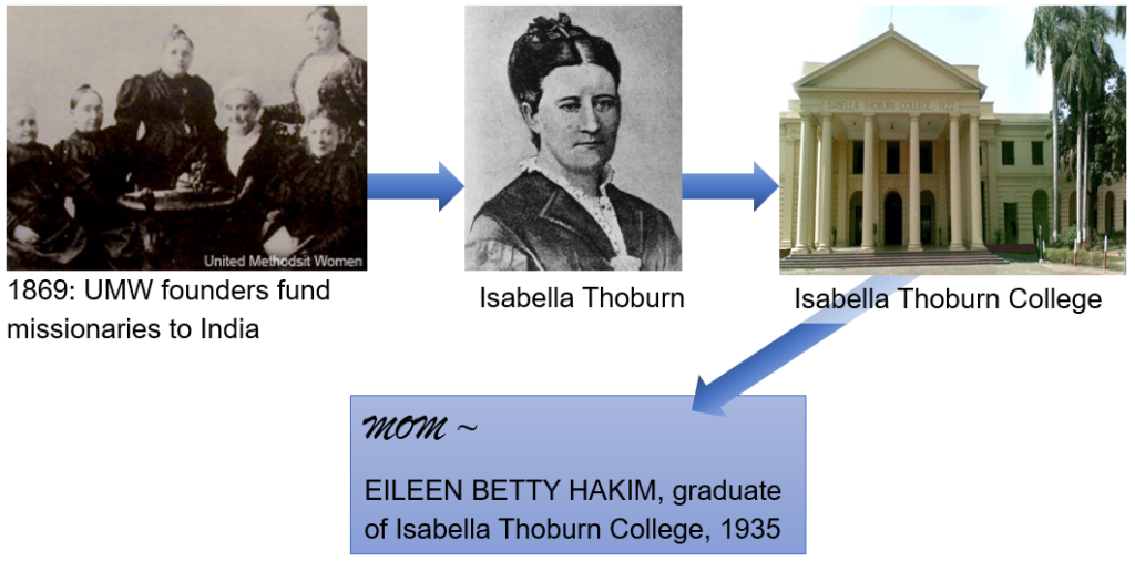 Not too many years later, a young woman – my mother, Eileen Betty Hakim Townsley – attended and graduated from Isabella Thoburn College. This was the beginning of her life-long passion for education, advocacy, service & leadership.